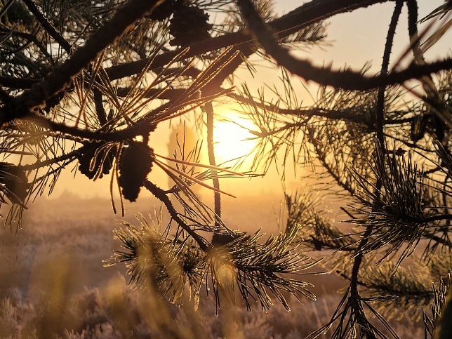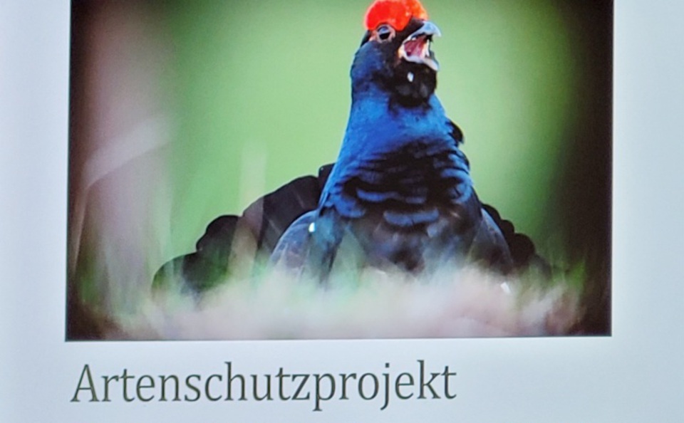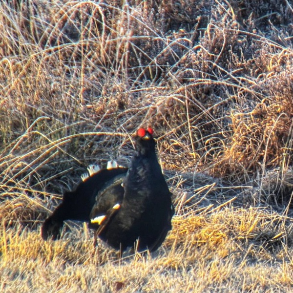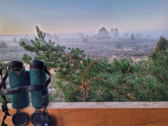 Mit Fernglas und warmer Kleidung ausgestattet gab es dann morgens ab 6 Uhr einen herrlichen nebelverhangenen Sonnenaufgang. Neben den Lauten des Birkhahns ließen sich diese dann nach Auflösung des Nebels beobachten. Während der Balzzeit von März bis April erfüllen die Hähne mit ihrem Kullern und Fauchen die Atmosphäre in der Heidelandschaft. Bei der Balz springen die Hähne hin und her, schlagen mit den Flügeln und drehen sich um die eigene Achse. Dabei präsentieren sie den weißen Schwanzfächer, der so weit über die Heidelandschaft sichtbar wird. Für alle Teilnehmenden war dies ein tolles Naturerlebnis.